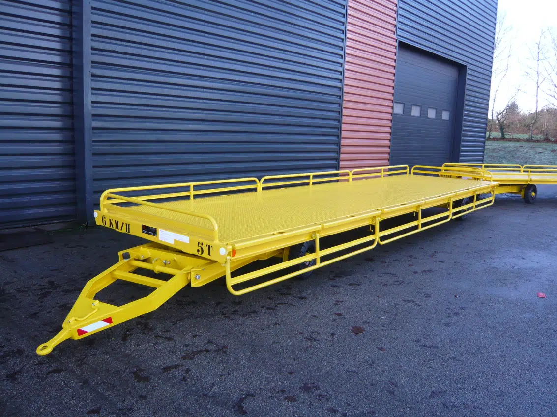 POISSON M. s.a. vous propose une gamme très large de remorques, adaptables à tous vos besoins professionnels.Remorques à plateau surbaissé pour du matériel à faible garde au sol ou pour le transport de nacelles élévatrices et grosses pièces. La direction est assurée par des fusées directrices ou des couronnes à billes. Remorque pour charges lourdes avec simple train directeur, remorque à multiples essieux directeurs, qui assure une bonne répartition des charges au sol, et une manœuvrabilité aisée, et remorque dotée d’essieux montés sur coussins d’air, recommandée pour les transports délicats. Nous avons des Châssis squelettes, et des plateaux de petite dimension, avec deux essieux directeurs et timon réversible, spécialement étudié pour circuler dans des espaces réduits. Nous avons également d’autres remorques disponibles, tels que, remorque à châssis-squelette avec ranchers amovibles, remorque à plateau inclinable, remorque pour transport outillage, et train de remorque.